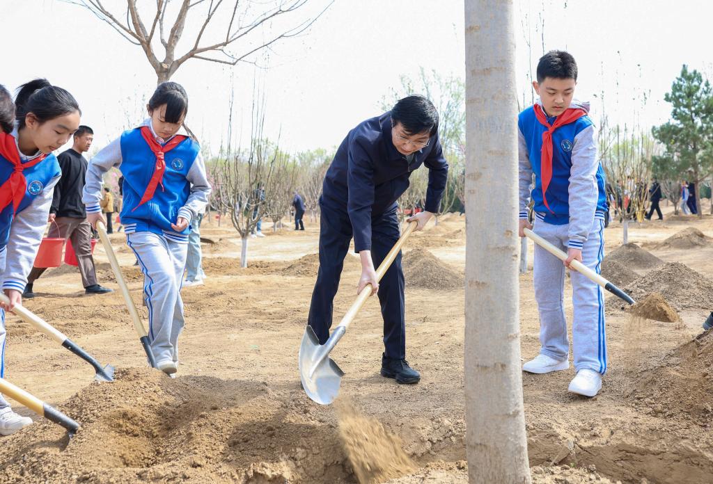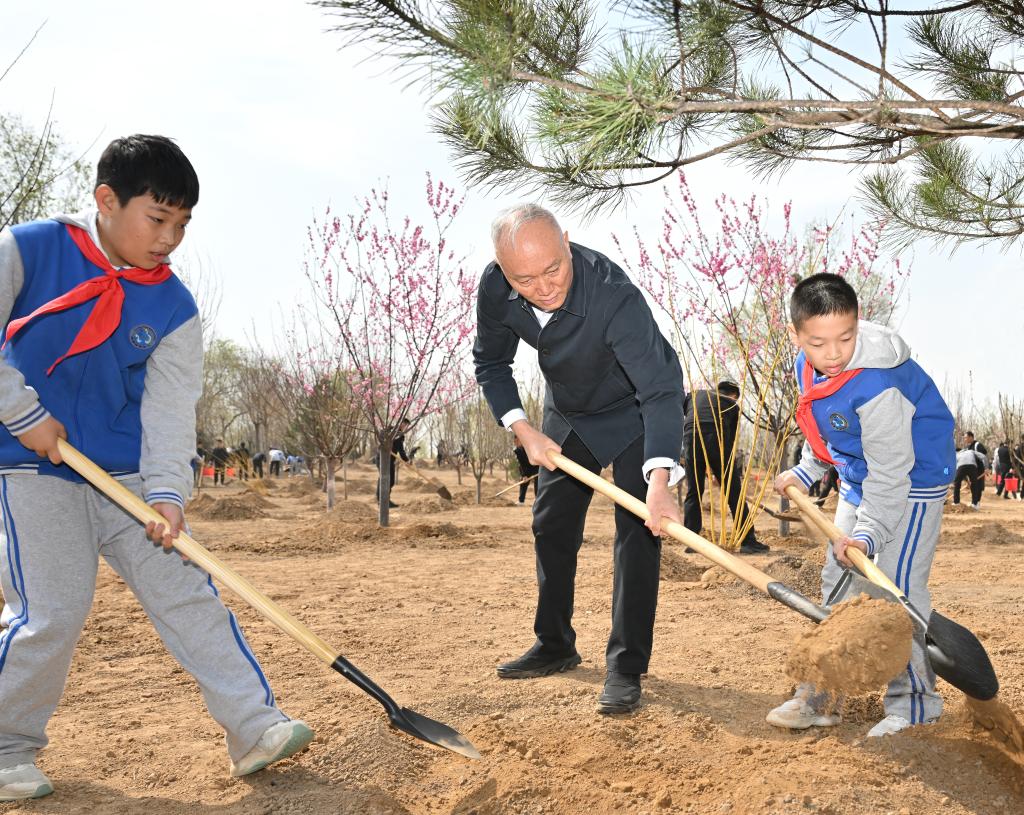 Xi and other Party and state leaders, including Li Qiang, Zhao Leji, Wang Huning, Cai Qi, Ding Xuexiang, Li Xi, and Han Zheng, arrived at the tree planting site on the bank of a river in Fengtai District in the morning and planted trees with officials and local people.