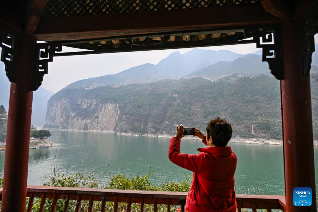 Tourists visit a scenic area in Fengjie County, southwest China's Chongqing Municipality, March 11, 2024. (Xinhua/Wang Quanchao)