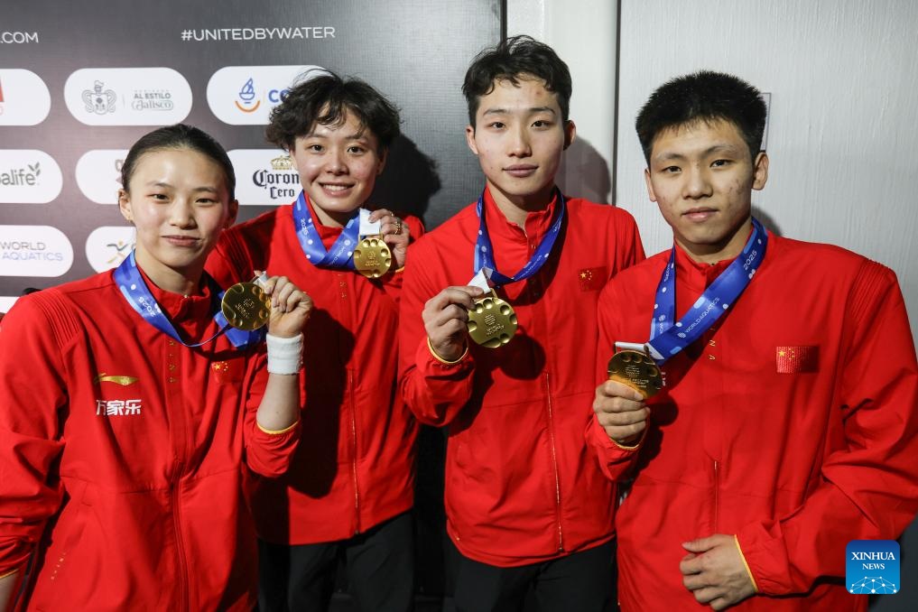 GUADALAJARA, Mexico, April 4 (Xinhua) -- China claimed the opening gold medal in the mixed team event at the World Aquatics Diving World Cup in Guadalajara on Friday.