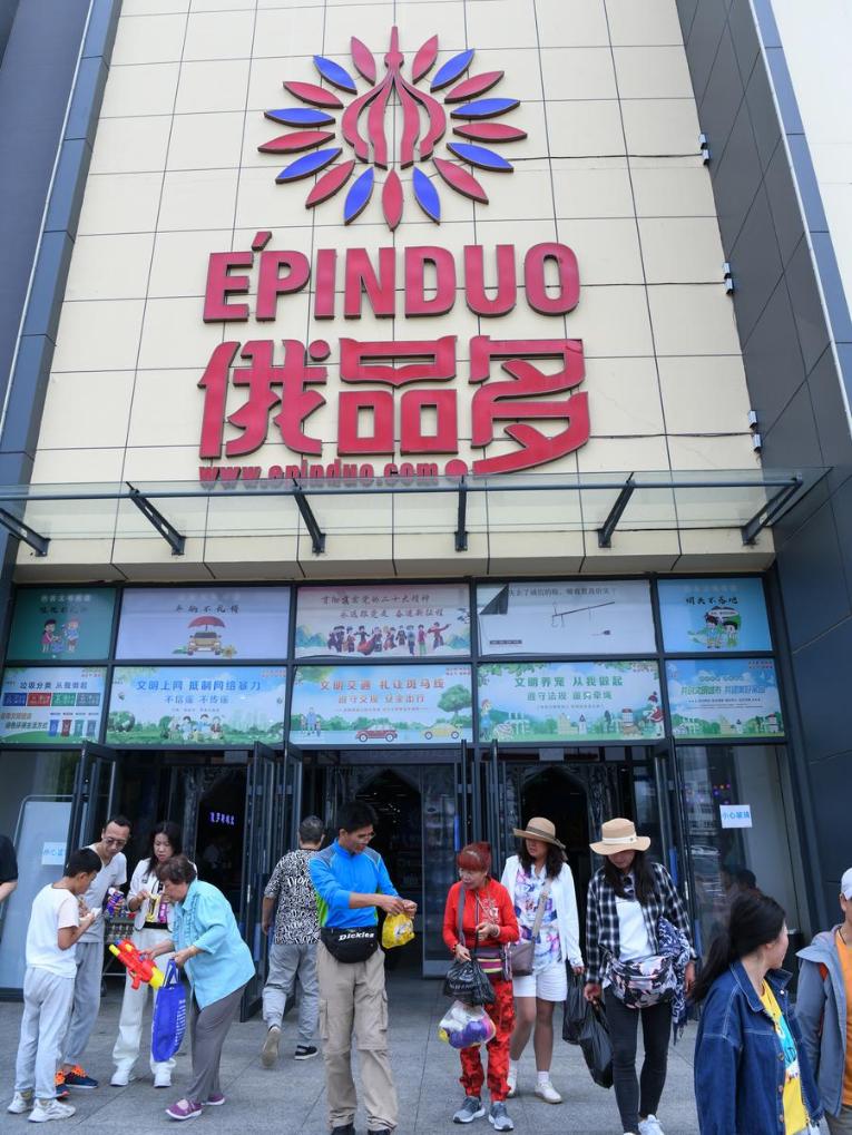 People are seen in front of a supermarket, which sells imported products, in Heihe, northeast China's Heilongjiang Province, Aug. 9, 2023. (Xinhua/Wang Song)