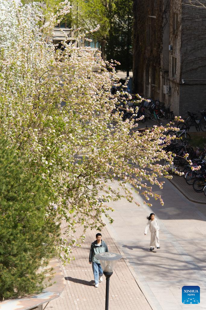 People walk at Beijing Forestry University in Beijing, capital of China, April 4, 2025. (Photo by Zhou Tinglu/Xinhua)