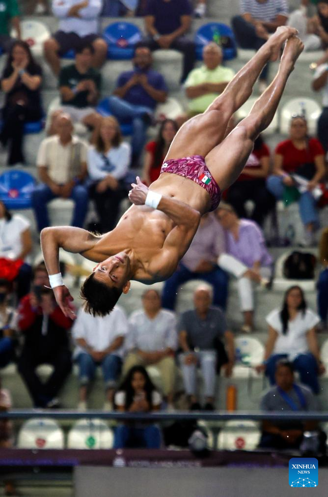 Randal Willars Valdez of Mexico competes during the men's 10m platform final at the World Aquatics Diving World Cup 2025 in Guadalajara, Jalisco, Mexico, on April 6, 2025. (Photo by Diana Marquez/Xinhua)
