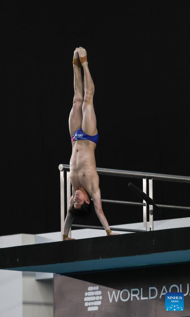 Zhu Zifeng of China competes during the men's 10m platform final at the World Aquatics Diving World Cup 2025 in Guadalajara, Jalisco, Mexico, on April 6, 2025. (Photo by Diana Marquez/Xinhua)