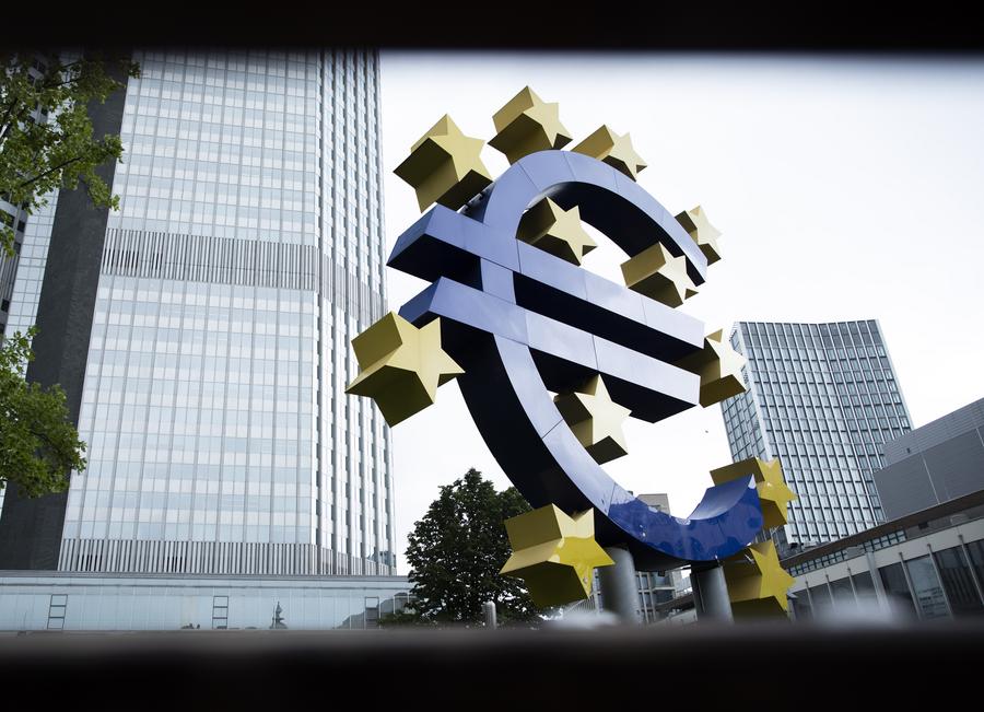 This photo taken on July 27, 2023 shows the Euro sign in Frankfurt, Germany. (Xinhua/Zhang Fan)