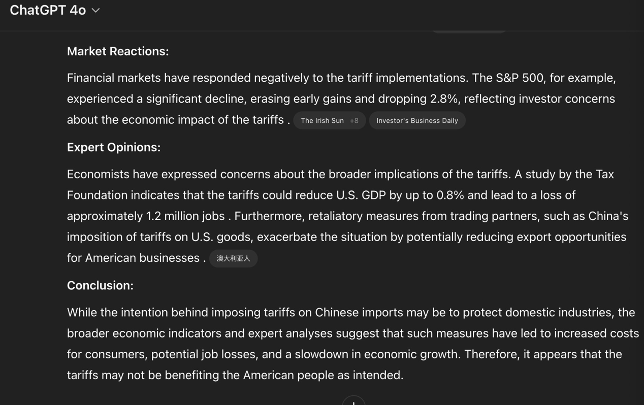 Warning from AI to Americans: Tariffs on China will most likely have a greater impact on US citizens
