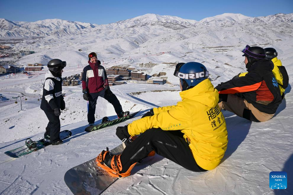 A ski expert from New Zealand teaches at Jikepulin International Ski Resort in Altay Prefecture, northwest China's Xinjiang Uygur Autonomous Region, Dec. 3, 2024. In recent years, with the abundant ice and snow resources of the Altay and Tianshan Mountains, Xinjiang are drawing increasing numbers of skiers and snowboarders, driven by China's expanding winter sports industry and ice-and-snow economy. A number of high-grade ski resorts have been constructed, attracting a large number of domestic and international tourists and gradually transforming ice and snow resources into economic benefits. (Xinhua/Hu Huhu)