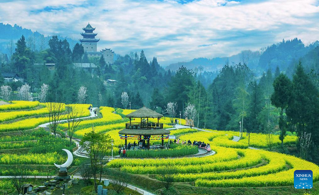 - Tourists enjoy blooming rapeseed flowers at Chongkan scenic spot in Chongqing