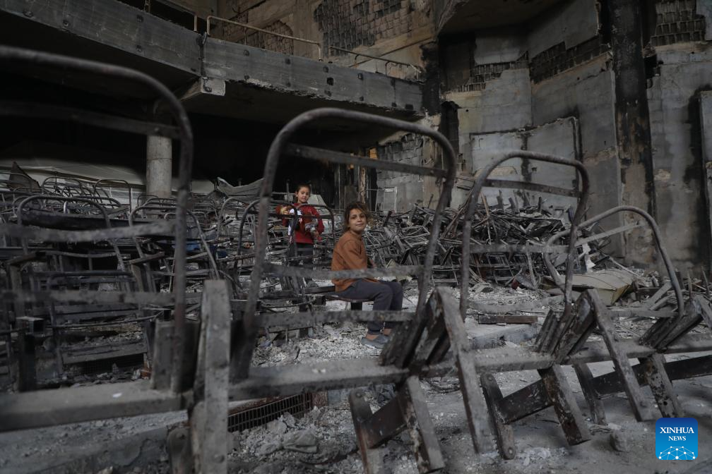 Displaced Palestinian children are seen at the Islamic University of Gaza, which was damaged by Israeli bombardment, in Gaza City, April 11, 2025. The Islamic University of Gaza, one of the largest universities in the Gaza Strip, now has turned into a shelter for hundreds of Palestinian families. (Photo by Rizek Abdeljawad/Xinhua)