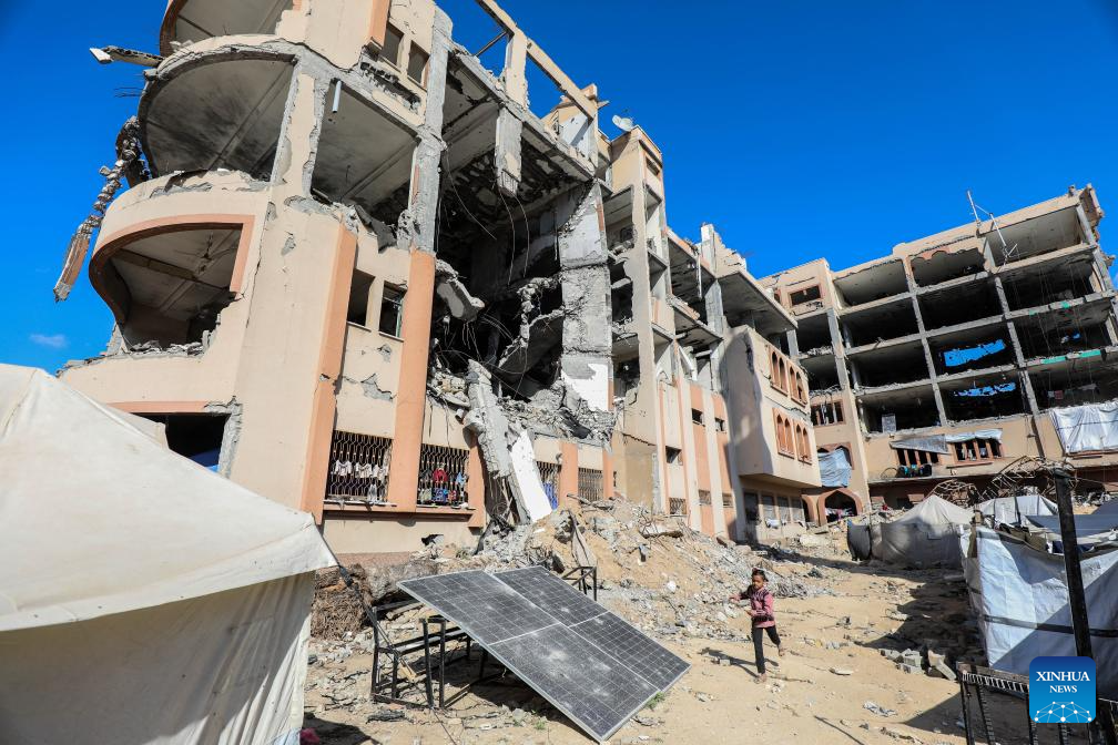 Displaced Palestinians are seen at the Islamic University of Gaza, which was damaged by Israeli bombardment, in Gaza City, April 11, 2025. The Islamic University of Gaza, one of the largest universities in the Gaza Strip, now has turned into a shelter for hundreds of Palestinian families. (Photo by Rizek Abdeljawad/Xinhua)