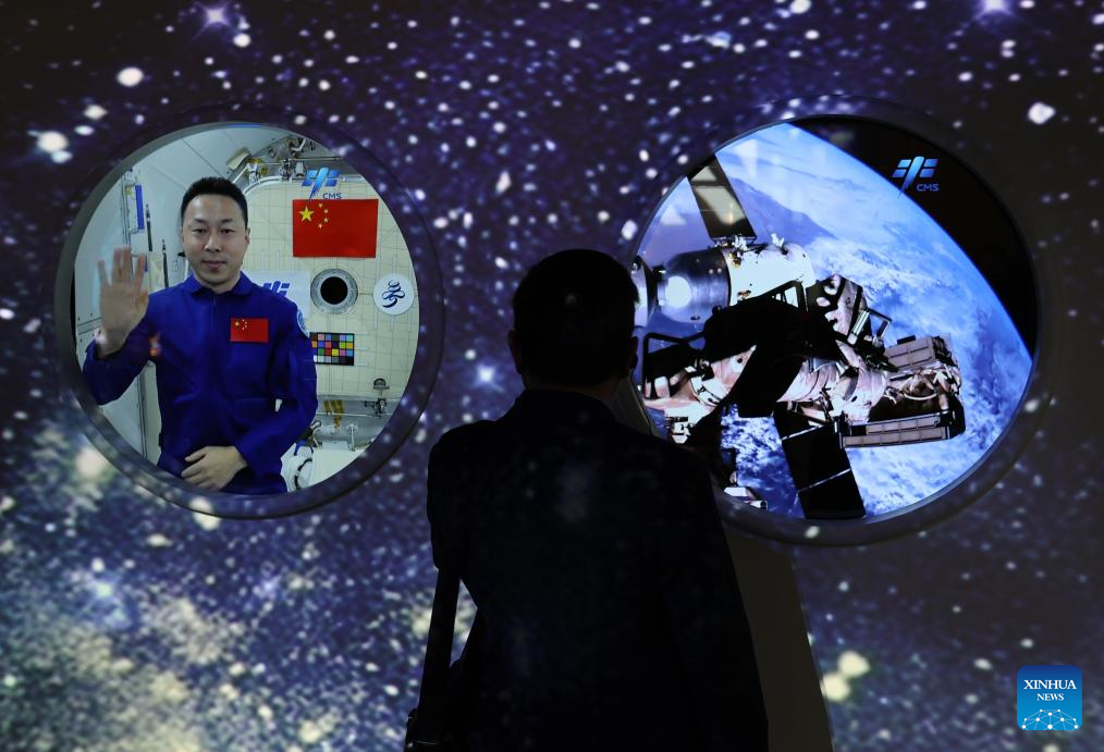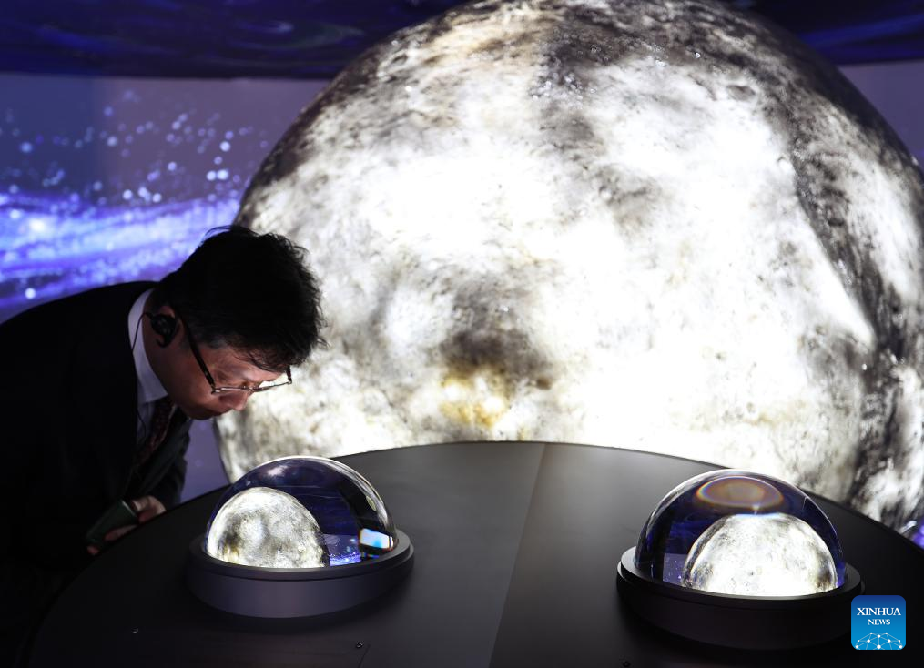 Highlights include side-by-side displays of lunar soil samples collected by China's Chang'e-5 and Chang'e-6 missions, the "Jiaolong" deep-sea submersible experience capsule and next-generation humanoid robots.