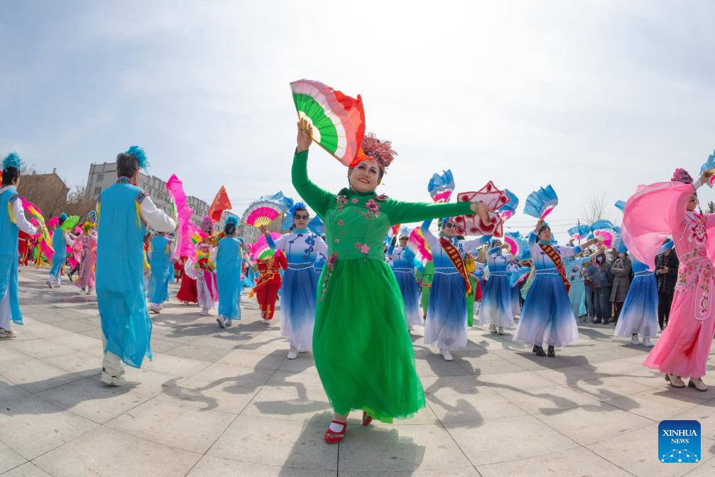 People perform at the branch venue of Hanjiang festival in Fujin, northeast China's Heilongjiang Province, April 12, 2025. (Photo by Qu Yubao/Xinhua)