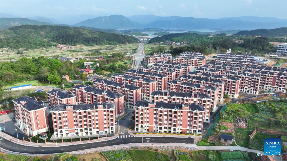 An aerial drone photo taken on April 10, 2025 shows a resettlement site in Xingning Township, Zixing City, central China's Hunan Province. (Xinhua/Chen Zhenhai)