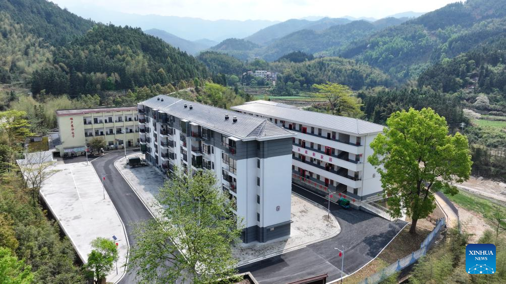 An aerial drone photo taken on April 10, 2025 shows a resettlement site in Bamianshan Yao Village, Zixing City, central China's Hunan Province. (Xinhua/Chen Zhenhai)