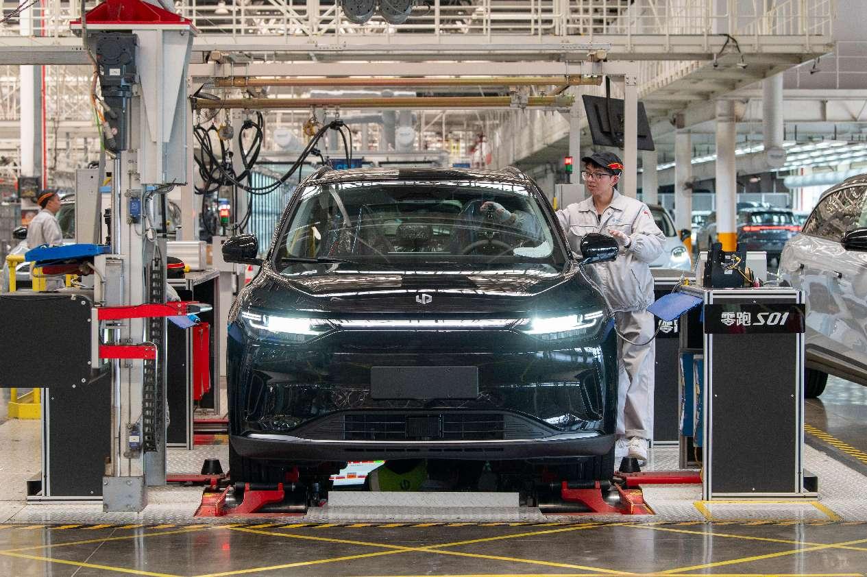 A new energy vehicle goes through quality check after being assembled in a smart workshop of Chinese carmaker Leapmotor in Jinhua, east China's Zhejiang province, April 2, 2025. (People's Daily Online/Hu Xiaofei)