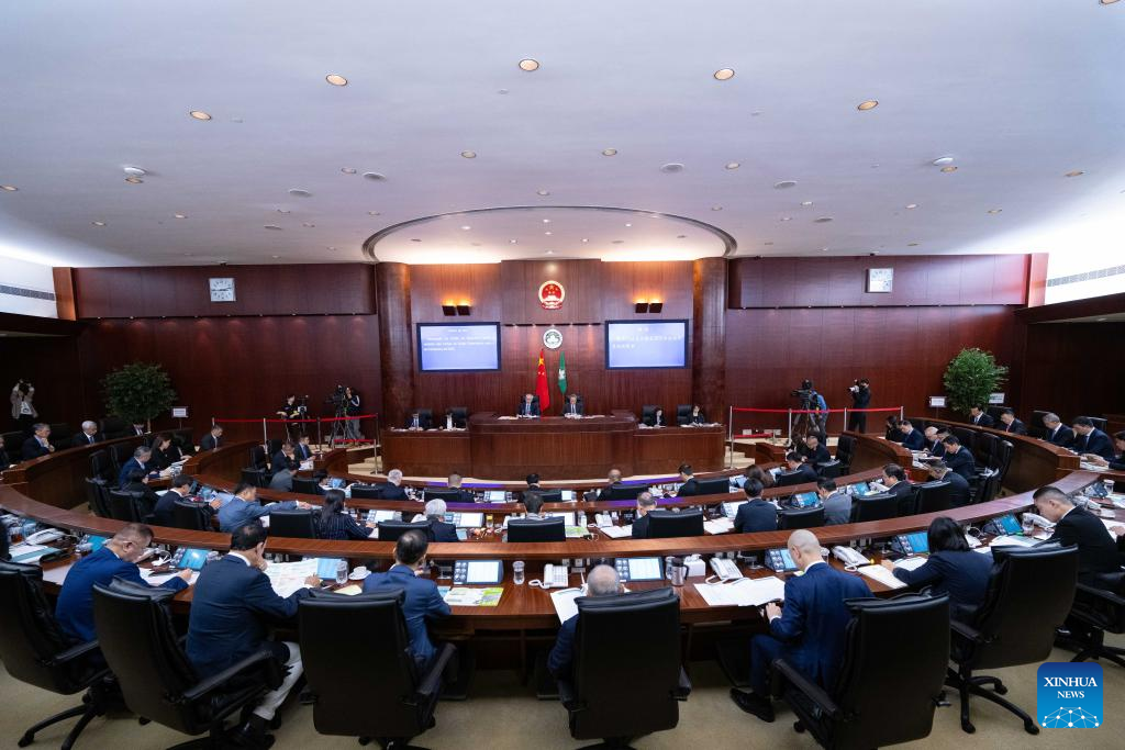MACAO, April 14 (Xinhua) -- Chief Executive of China's Macao Special Administrative Region (SAR) Sam Hou Fai delivered the 2025 fiscal year policy address on Monday, stressing innovation for development and forging ahead into a new era.