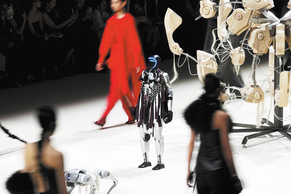Unitree Robotics' G1 robot joins models during Shanghai Fashion Week on March 26. (Zhang Hengwei/China News Service)