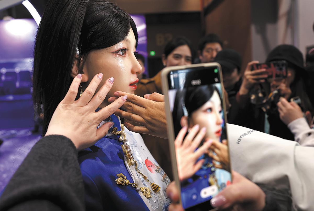 A humanoid robot attracts attention during the China Science Fiction Convention 2025 at Shougang Park in Beijing on March 27. (Zou Hong/China Daily)