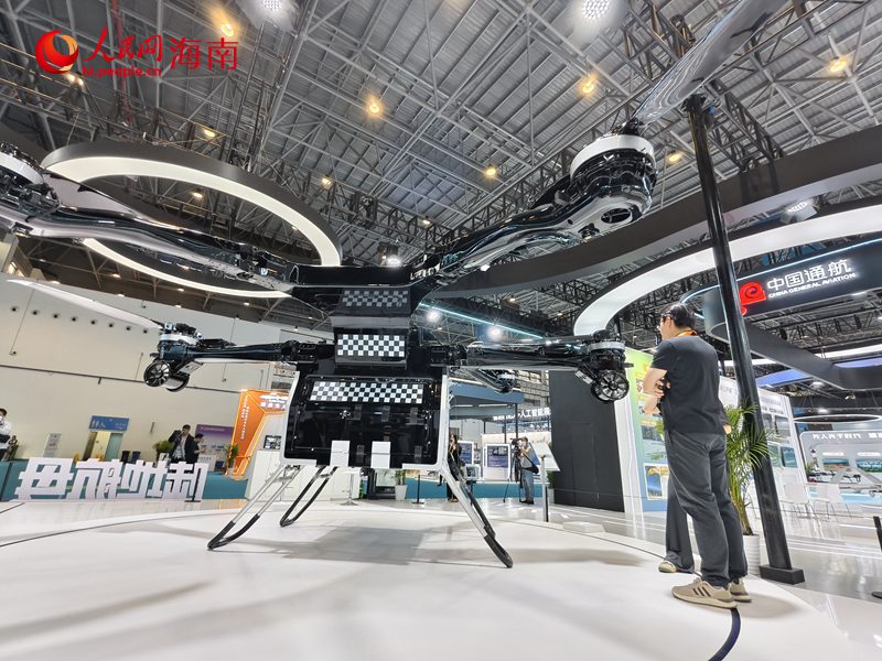 Photo shows a "Land Aircraft Carrier," a flying car developed by Chinese electric vehicle maker XPENG, on display at the ongoing fifth China International Consumer Products Expo in Haikou, south China's Hainan Province. (People's Daily Online/Fu Zemin)