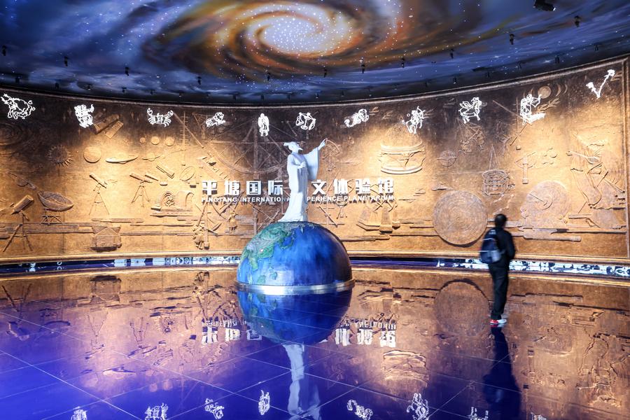 A tourist visits an experience planetarium at an astronomy-themed town in Pingtang County, southwest China's Guizhou Province, Feb. 18, 2025. (Xinhua/Ou Dongqu)