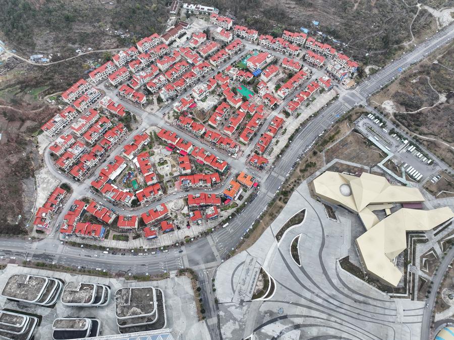 An aerial drone photo taken on Feb. 18, 2025 shows a view of Kedu Town, an astronomy-themed town, in Pingtang County, southwest China's Guizhou Province. (Xinhua/Ou Dongqu)