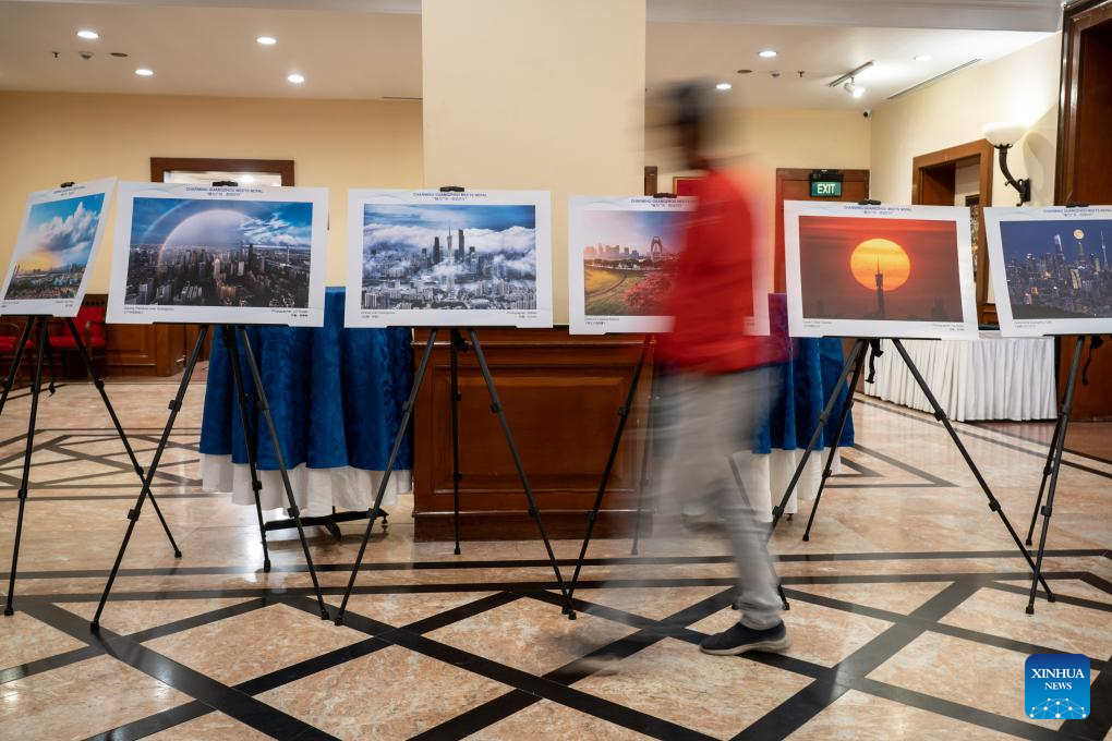 A photo exhibition is held at the "Charming Guangzhou Meets Nepal" city image showcase in Kathmandu, Nepal, April 15, 2025. The Chinese city of Guangzhou on Tuesday showcased its city image in the Nepali capital in efforts to deepen cultural exchanges and cooperation. (Photo by Hari Maharjan/Xinhua)