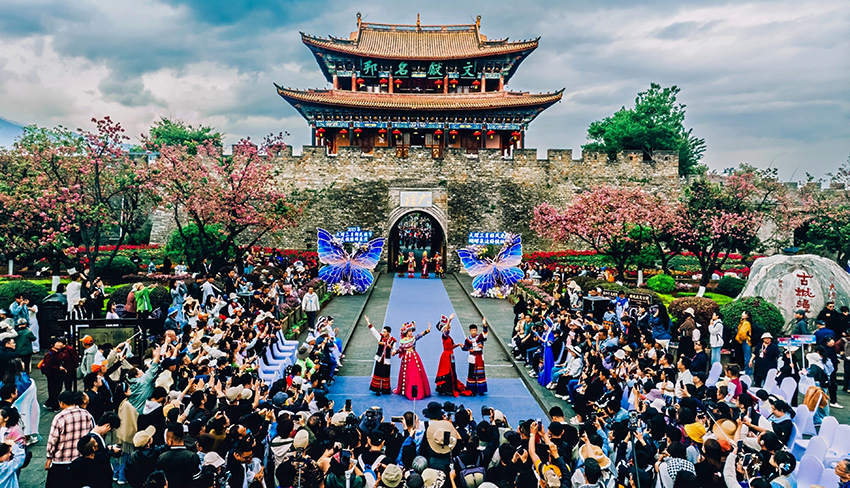Photo shows a scene from an ethnic fashion show in Dali Bai Autonomous Prefecture, southwest China's Yunnan Province. (Photo courtesy of the new media association of Dali Bai Autonomous Prefecture)
