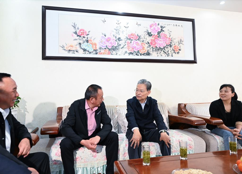 Zhao Leji, a member of the Standing Committee of the Political Bureau of the Communist Party of China Central Committee and chairman of the National People's Congress Standing Committee, visits a local household at Yangting Village of Wuheng Township, Anqing City, east China's Anhui Province, April 16, 2025. Zhao made a research and investigation tour to the provinces of Jiangsu and Anhui in east China from Monday to Thursday. (Xinhua/Li Xiang)