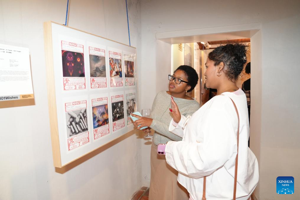 People attend "101 Wishes: The Beauty of Chinese Characters" Exhibition at the 2025 International Chinese Language Day event in Cape Town, South Africa, on April 17, 2025. A vibrant celebration to mark the 2025 International Chinese Language Day, themed "Chinese Language: Together for a Bright Future," was held on Thursday at the Iziko Learning Center in Cape Town. (Xinhua/Wang Lei)