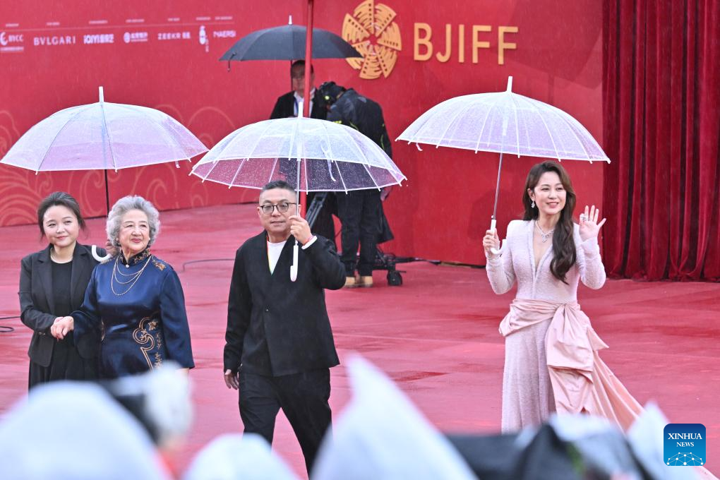 Main cast of the film "Better Me, Better You" walk on the red carpet of the 15th Beijing International Film Festival (BJIFF) in Beijing, capital of China, April 18, 2025. The 15th BJIFF kicked off on Friday in the Chinese capital. (Xinhua/Li Xin)
