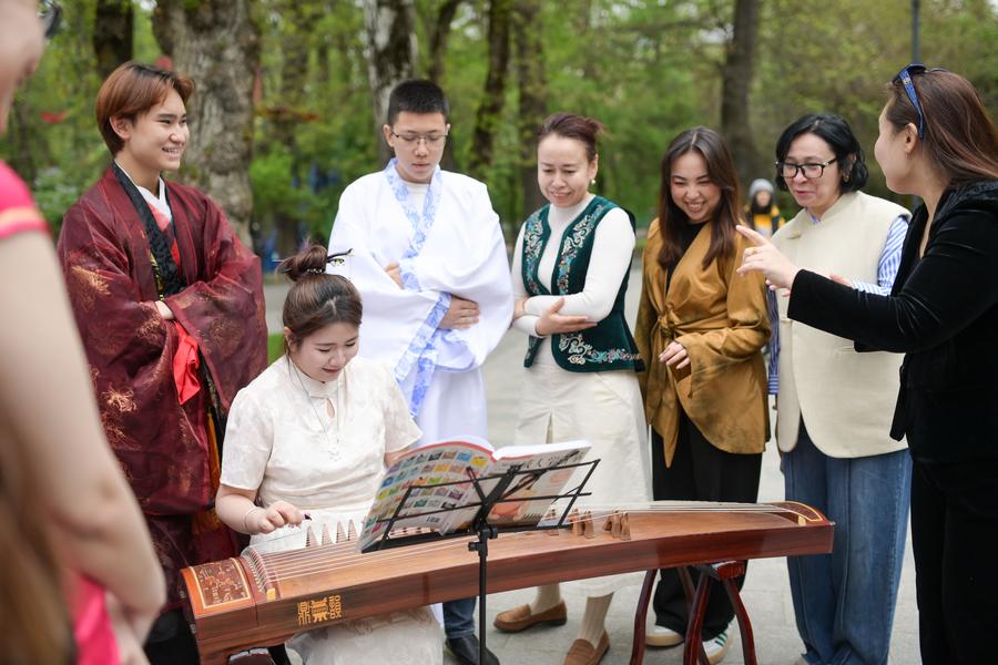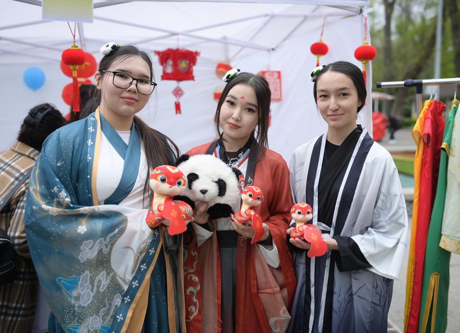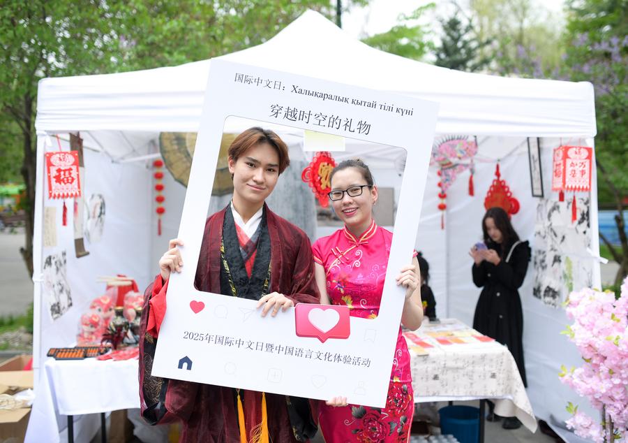 ALMATY, April 19 (Xinhua) -- A celebration event marking the 2025 International Chinese Language Day was held in Almaty of Kazakhstan Saturday, offering an immersive cultural experience that blended Chinese calligraphy, Chinese traditional painting, Hanfu as well as Guzheng (Chinese plucked zither) performance.