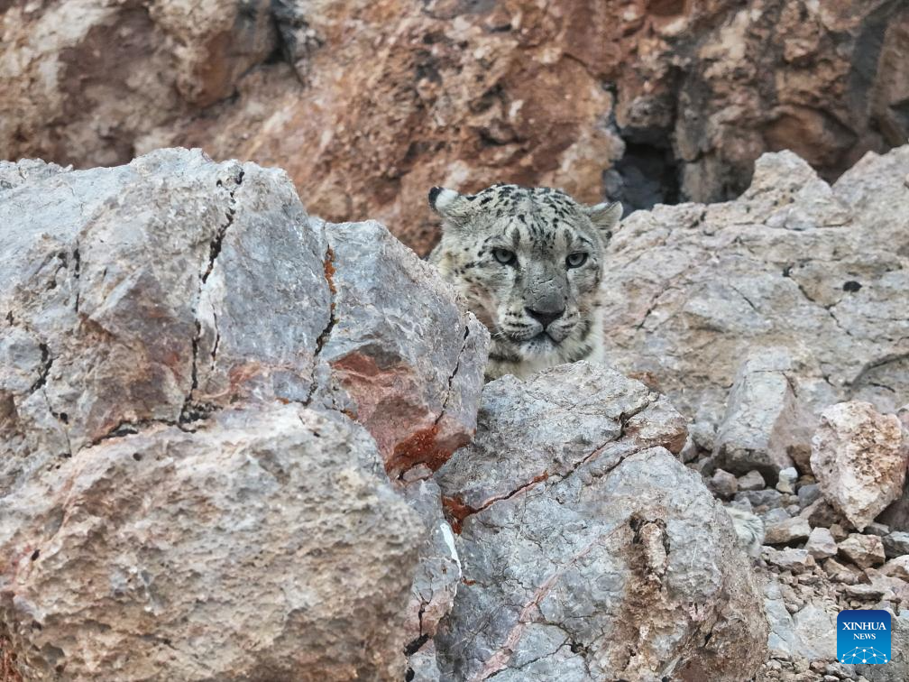 A snow leopard is pictured in Gerze County of Ngari Prefecture, southwest China's Xizang Autonomous Region, April 18, 2025. Known as the "king of the snow mountains," the snow leopard is under first-class national protection in China, and is listed as vulnerable by the International Union for Conservation of Nature. (Photo by Sonam Rinchen/Xinhua)
