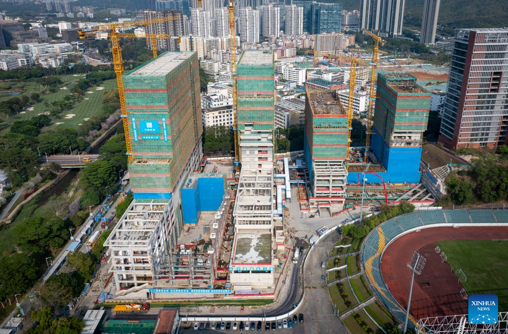 An aerial drone photo taken on April 1, 2025 shows the construction site of a key laboratory cluster project of the Harbin Institute of Technology's Shenzhen campus in Shenzhen, south China's Guangdong Province. (Xinhua/Mao Siqian)