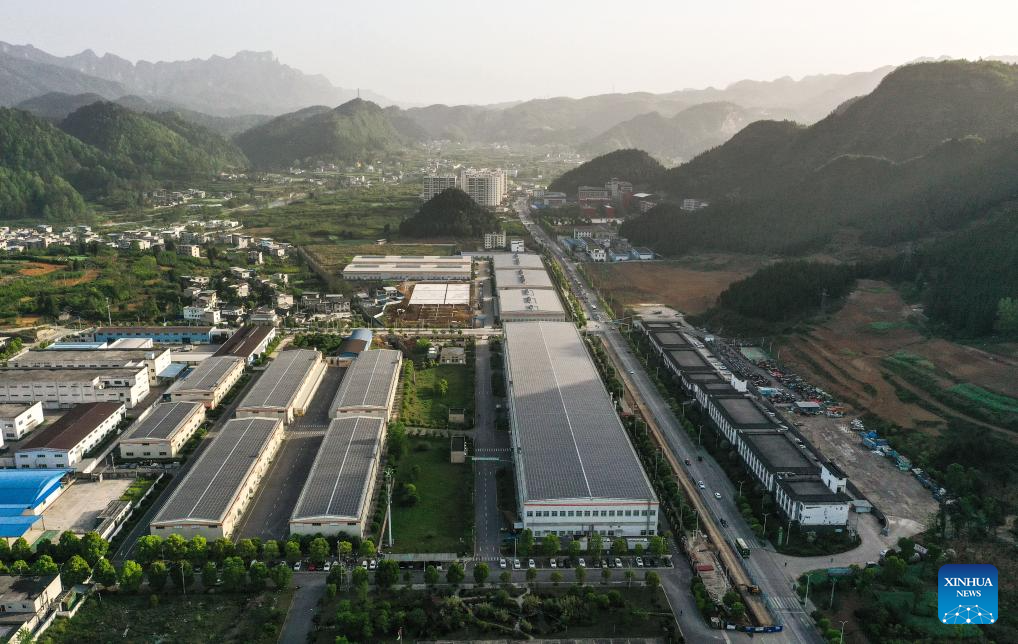 An aerial drone photo shows a matcha factory in Jiangkou County of Tongren, southwest China's Guizhou Province, April 14, 2025. (Xinhua/Yang Wenbin)