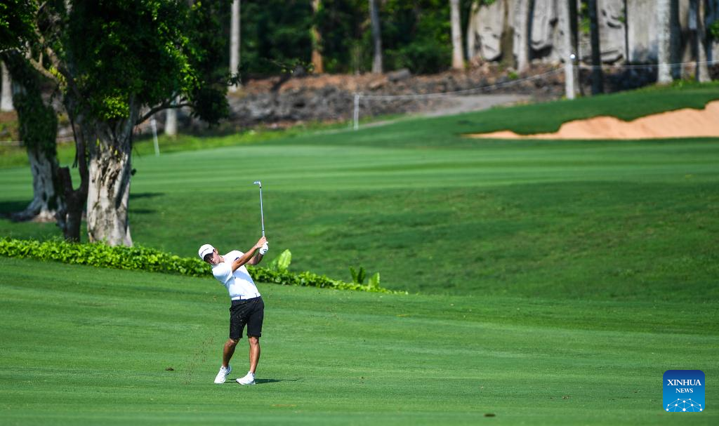 Alfredo Garcia-Heredia (L) of Spain competes during the round 1 at the Hainan Classic golf tournament of the DP World Tour in Haikou, south China's Hainan Province, April 24, 2025. (Xinhua/Yang Guanyu)