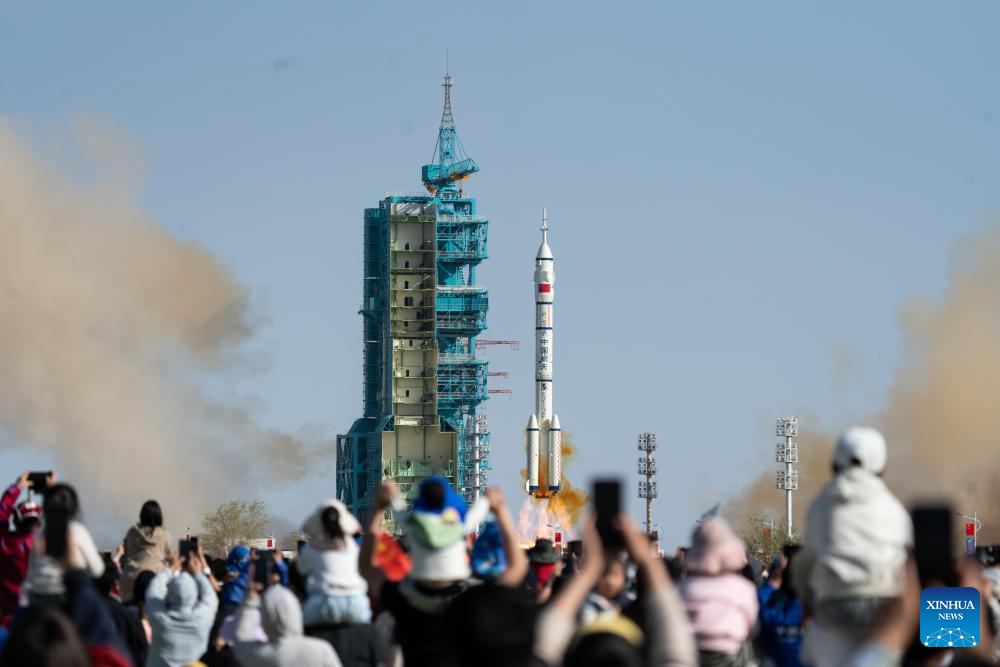 JIUQUAN, April 24 (Xinhua) -- China successfully launched the Shenzhou-20 crewed spaceship on Thursday, sending three astronauts to its orbiting space station for a six-month mission.