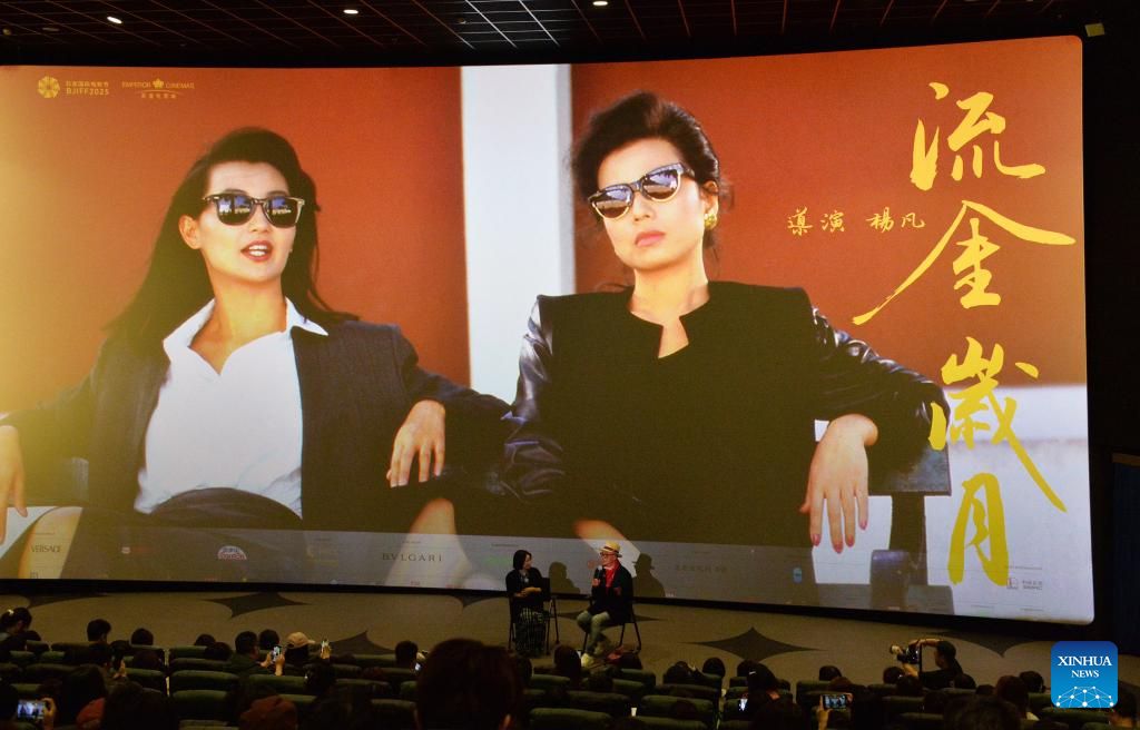 Joan Chen (R), jury member of the 15th Tiantan Award, attends an activity after the screening of Red Rose White Rose during the 15th Beijing International Film Festival in Beijing, capital of China, April 25, 2025. (Xinhua/Xiao Xiao)