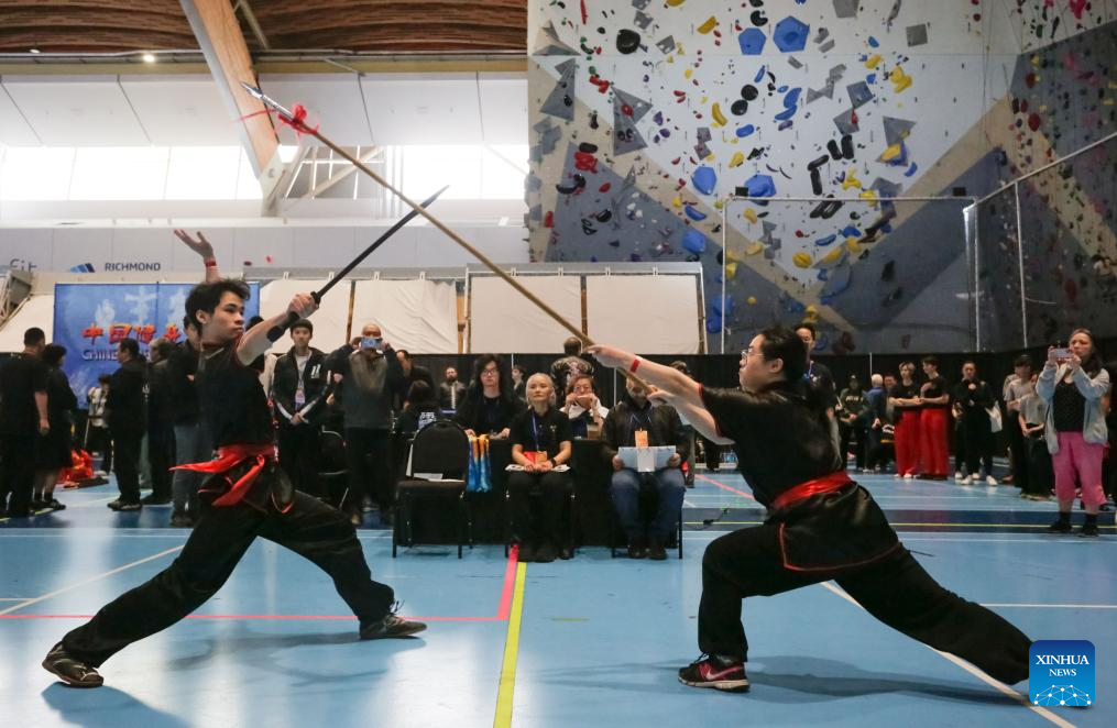 Contestants compete in the Wushu division during the 2025 Can-Am Martial Arts Championships in Richmond, British Columbia, Canada, April 26, 2025. (Photo by Liang Sen/Xinhua)