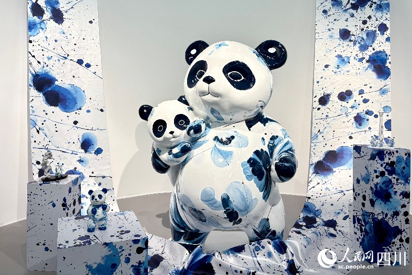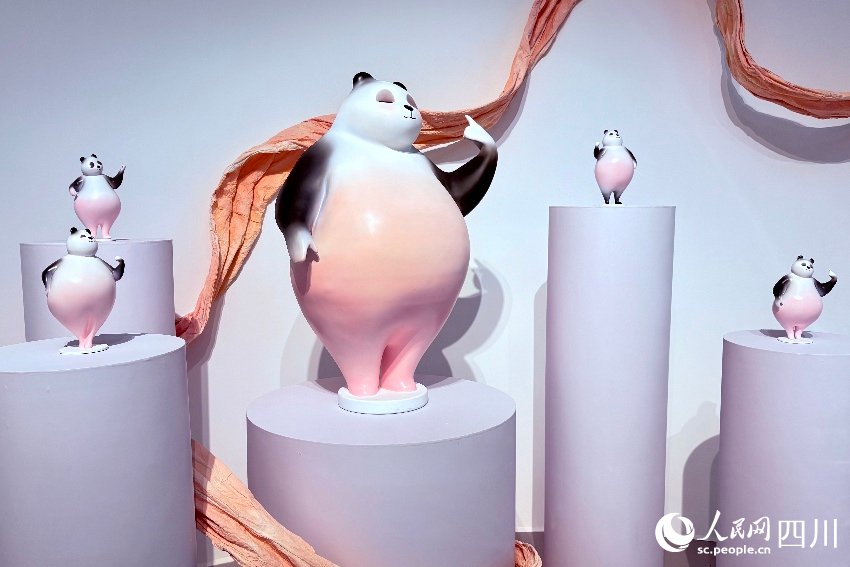 Giant panda-themed artworks are displayed during the "Panda Homeland: Culture & Creativity Contest" exhibition at Beihu Ecological Park in Chengdu, southwest China's Sichuan Province. (People's Daily Online/Zhu Hong)