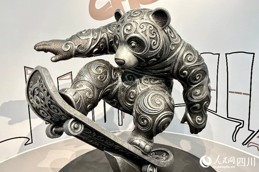 A giant panda-themed artwork is displayed during the "Panda Homeland: Culture & Creativity Contest" exhibition at Beihu Ecological Park in Chengdu, southwest China's Sichuan Province. (People's Daily Online/Zhu Hong)