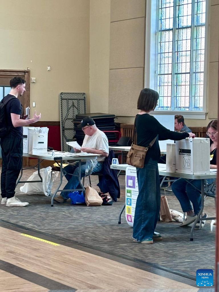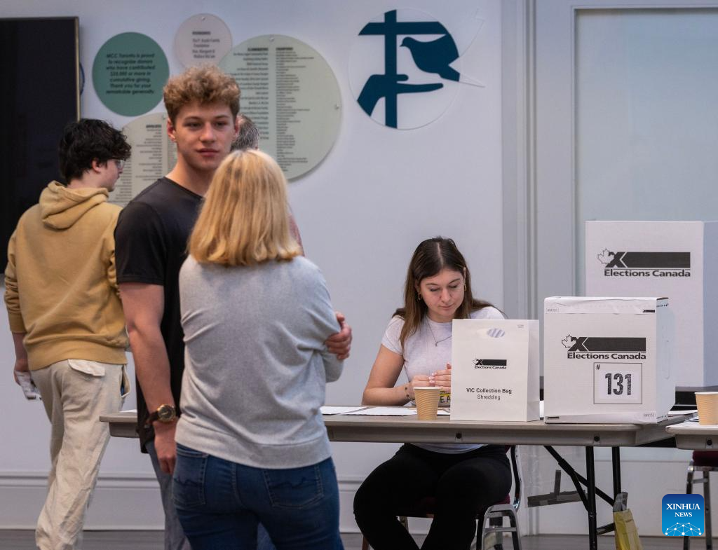 OTTAWA, April 28 (Xinhua) -- Millions of Canadians are lining up to cast their ballots on Monday as U.S. President Donald Trump weighed in on the election with a new threat of annexation of the country.