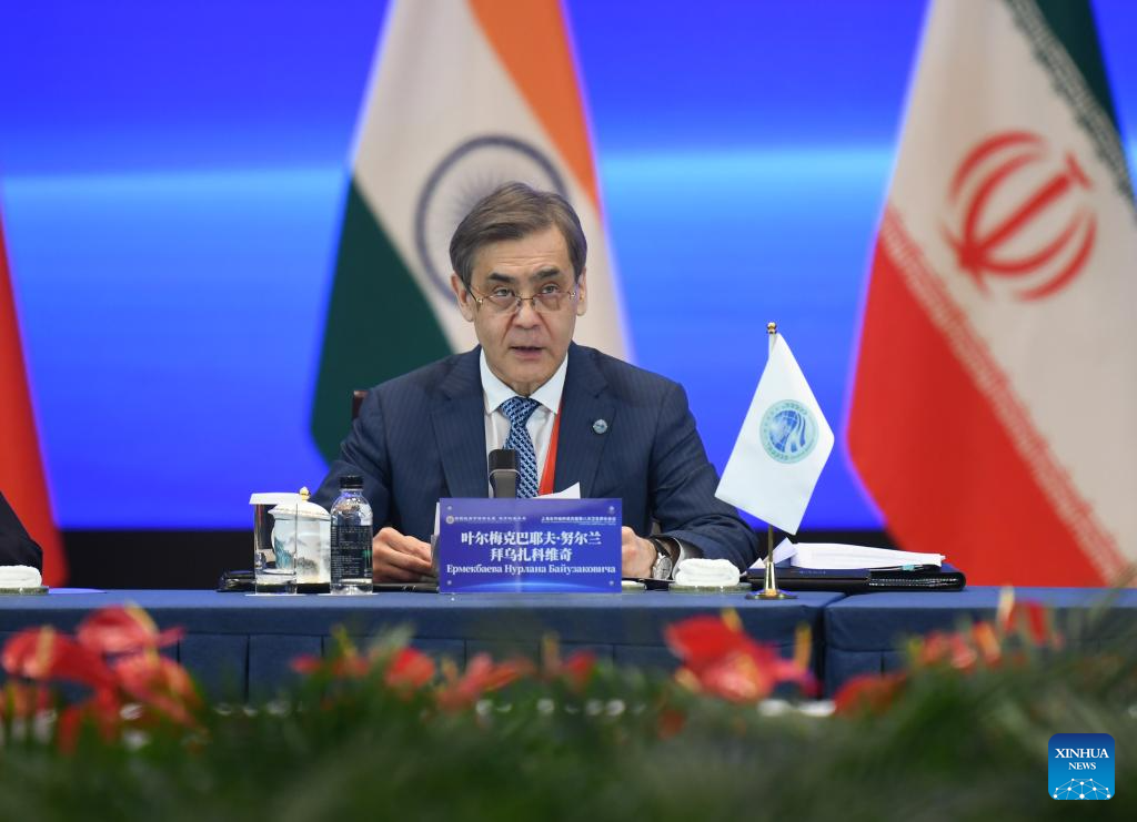 The Shanghai Cooperation Organization (SCO) Secretary-General Nurlan Yermekbayev gives a speech at the opening ceremony of the eighth SCO Health Ministers' Meeting in Xi'an, northwest China's Shaanxi Province, April 28, 2025. (Xinhua/Zhang Bowen)