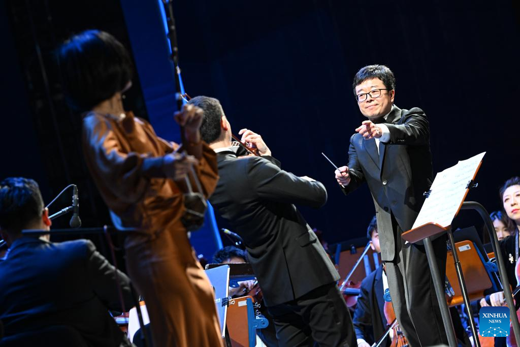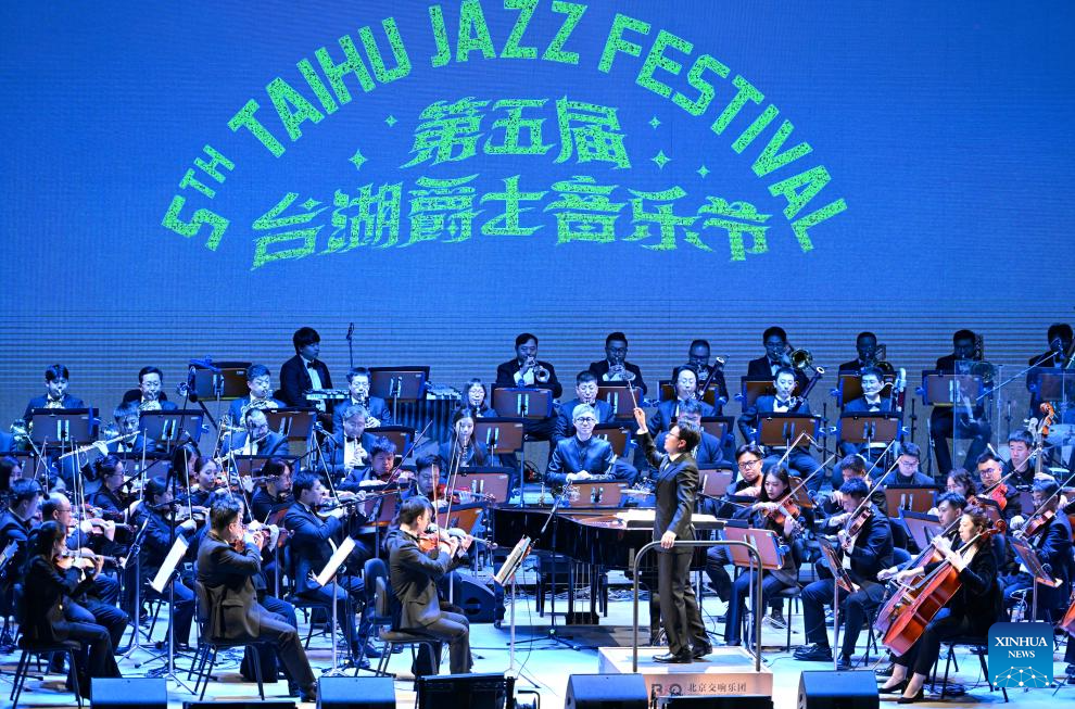 Members from Beijing Symphony Orchestra perform during a concert of the 5th Taihu Jazz Festival in Tongzhou District of Beijing, capital of China, April 30, 2025. The 5th Taihu Jazz Festival opened in Tongzhou District of Beijing on Wednesday. (Xinhua/Chen Zhonghao)