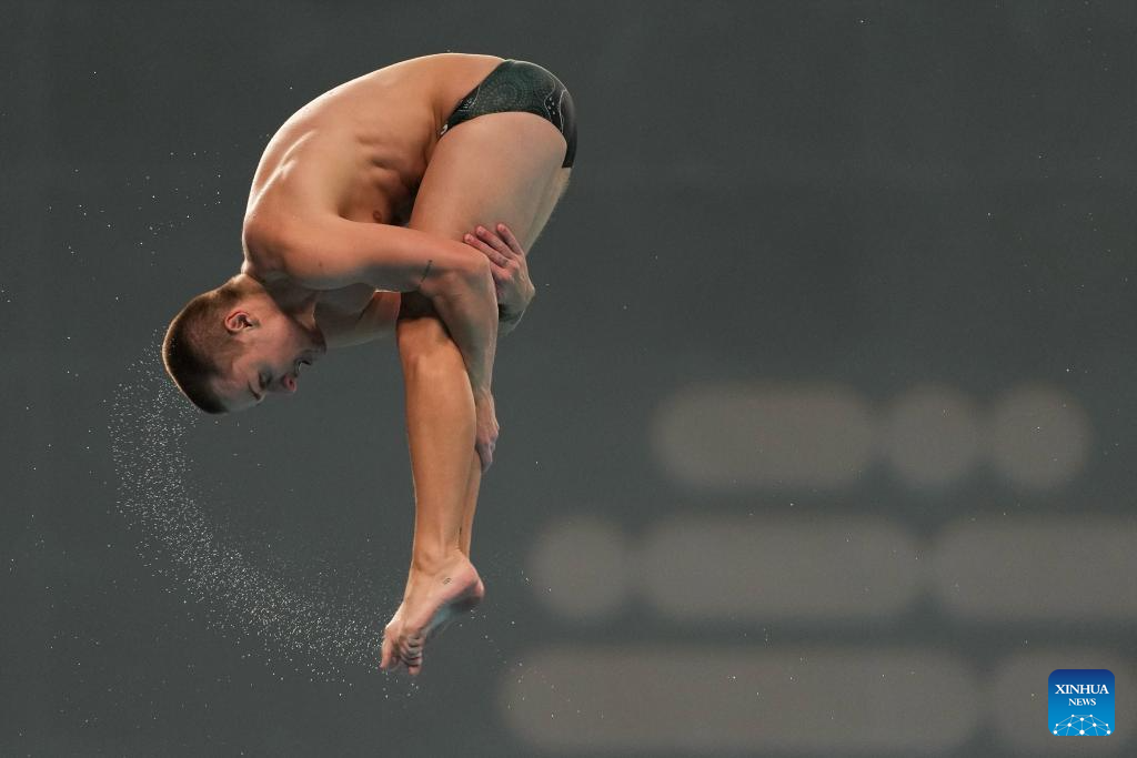 Cassiel Rousseau of Australia competes during the men's 10m platform final at the World Aquatics Diving World Cup 2025 Super Final in Beijing, capital of China, May 4, 2025. (Photo by Na Yuqi/Xinhua)