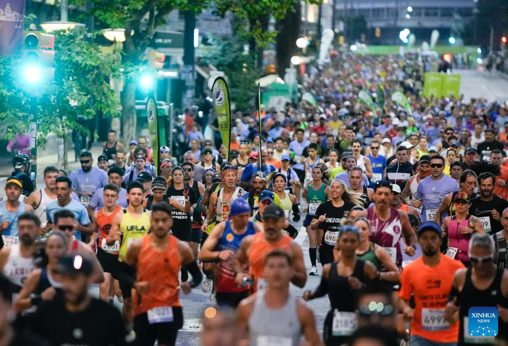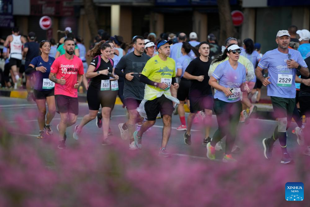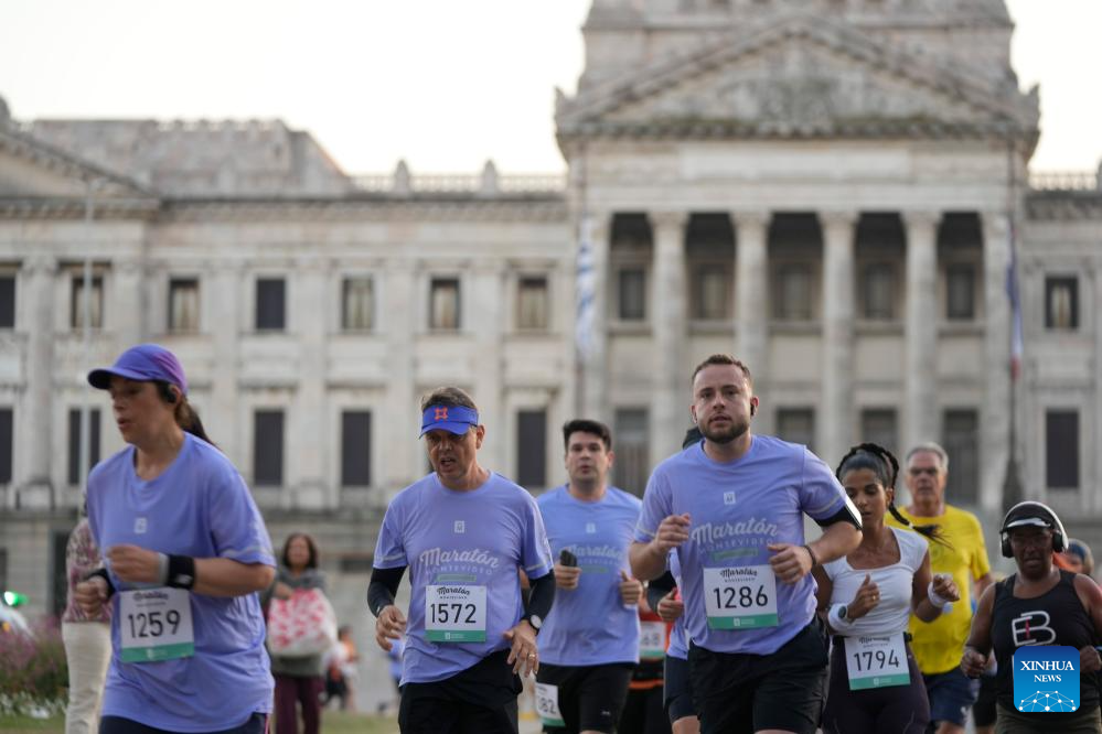 Athletes compete during the Montevideo Marathon in Montevideo, Uraguay, May 4, 2025. (Photo by Nicolas Celaya/Xinhua)
