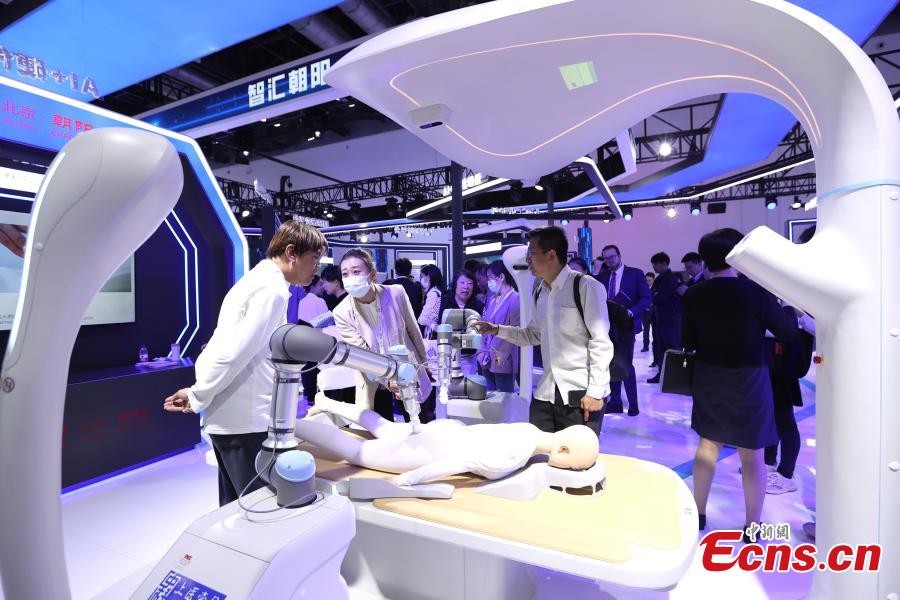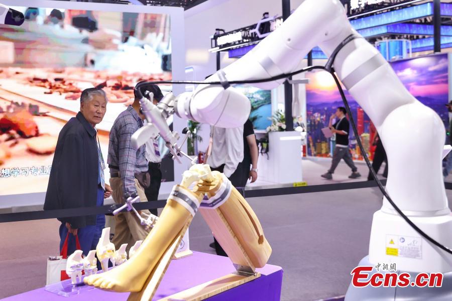 People visit the 27th China Beijing International High-tech Expo in Beijing, May 8, 2025. (China News Service/Zhang Xiangyi)