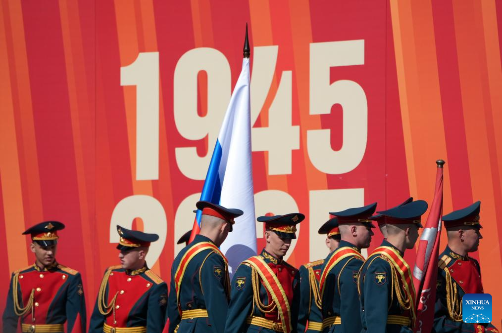 Members of an honor guard prepare to attend a grand parade marking the 80th anniversary of the victory in the Soviet Union's Great Patriotic War in Moscow, Russia, May 9, 2025. (Xinhua/Lai Xiangdong)