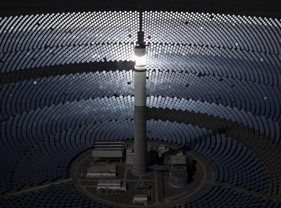 An aerial drone photo taken on Sept. 12, 2024 shows a partial view of a 50-megawatt molten-salt solar thermal power plant in Naomaohu Township of Hami City, northwest China's Xinjiang Uygur Autonomous Region. (Xinhua/Hu Huhu)
