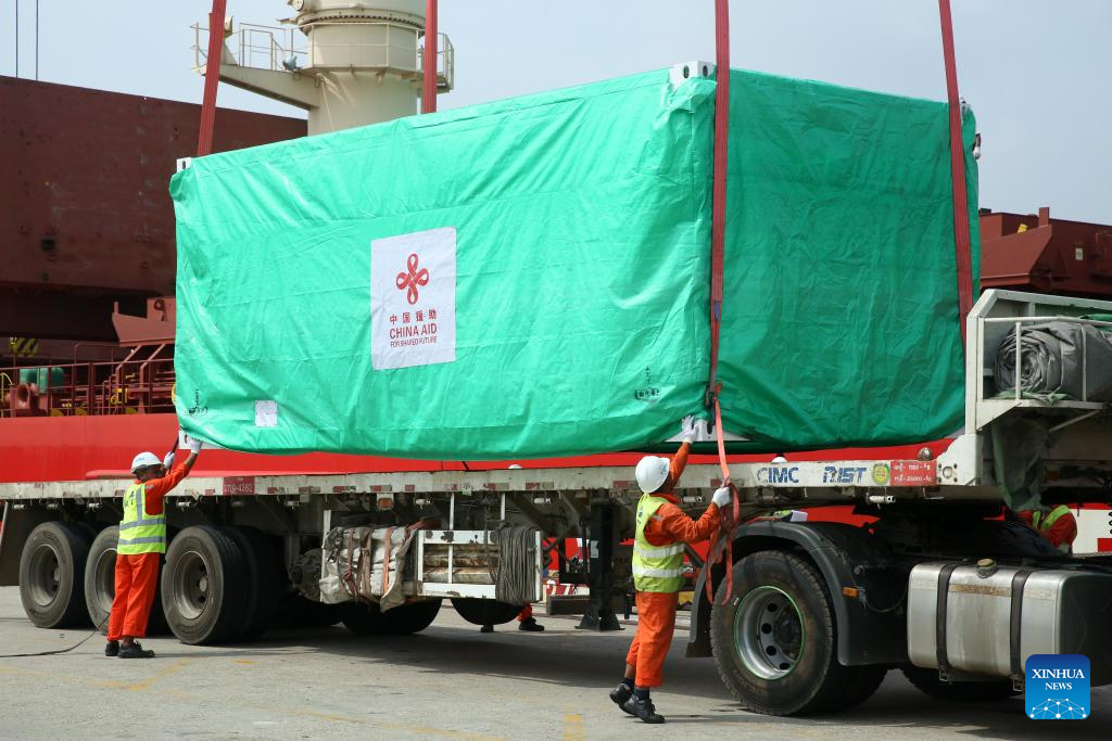 This photo taken on May 10, 2025 shows the 13th batch of emergency humanitarian aid supplies dispatched by the Chinese government in Yangon, Myanmar. The emergency humanitarian assistance was handed over to Myanmar here on Saturday. (Photo by Haymhan Aung/Xinhua)