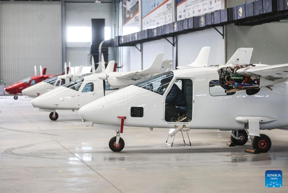 Staff members work on the assembly of an aircraft at Rhyxeon General Aircraft Co., Ltd. in Shenyang, northeast China's Liaoning Province, May 13, 2024.