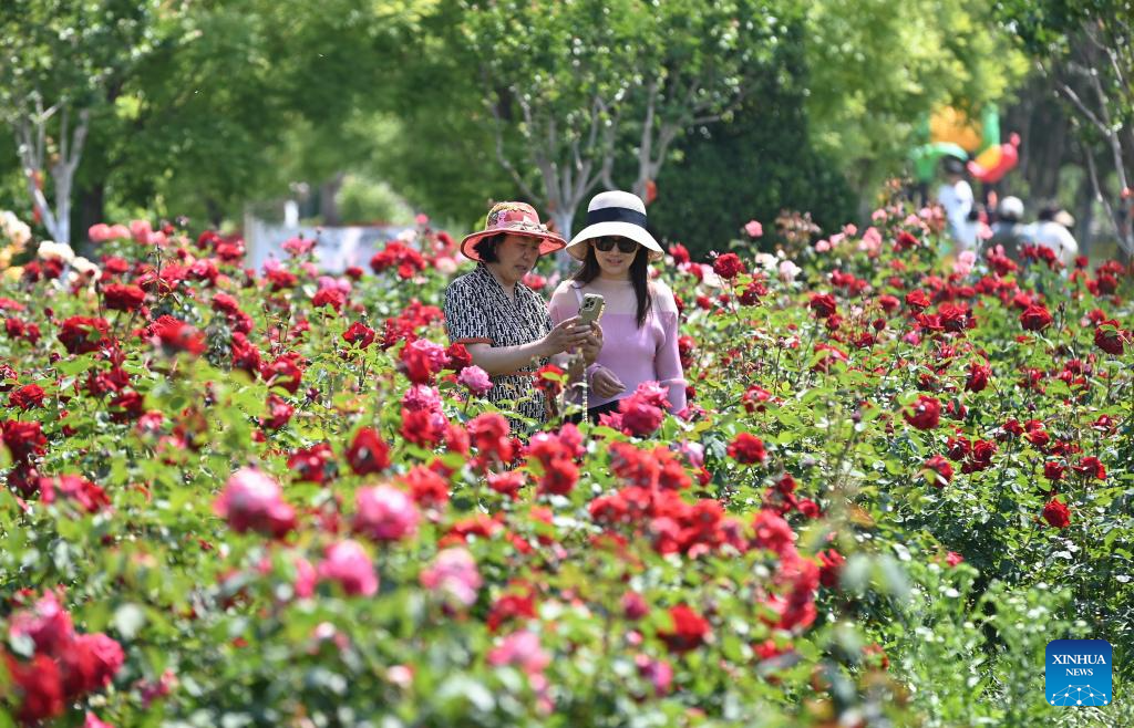 Tourists enjoy flowers at a scenic area in Zaozhuang City, east China's Shandong Province, May 11, 2025. (Photo by Li Zhijun/Xinhua)